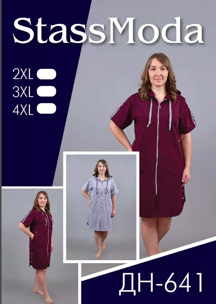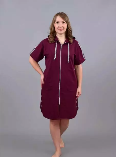 Модель із капюшоном та короткими рукавами ідеально підходить для домашнього носіння. Зручні накладні кишені додають функціональності, а елегантний крій забезпечує стильний вигляд. Застібка на блискавку дозволяє швидко та легко одягати халат.