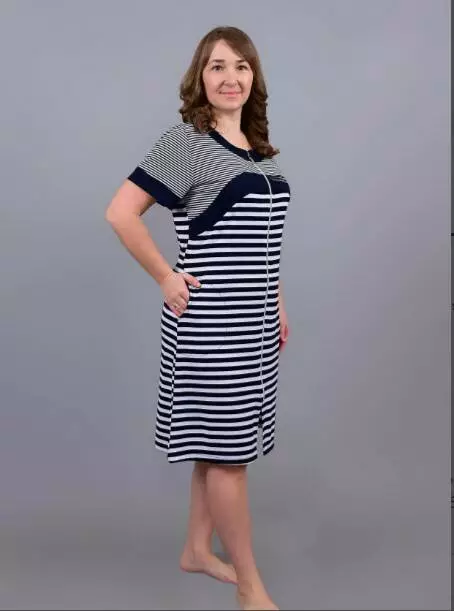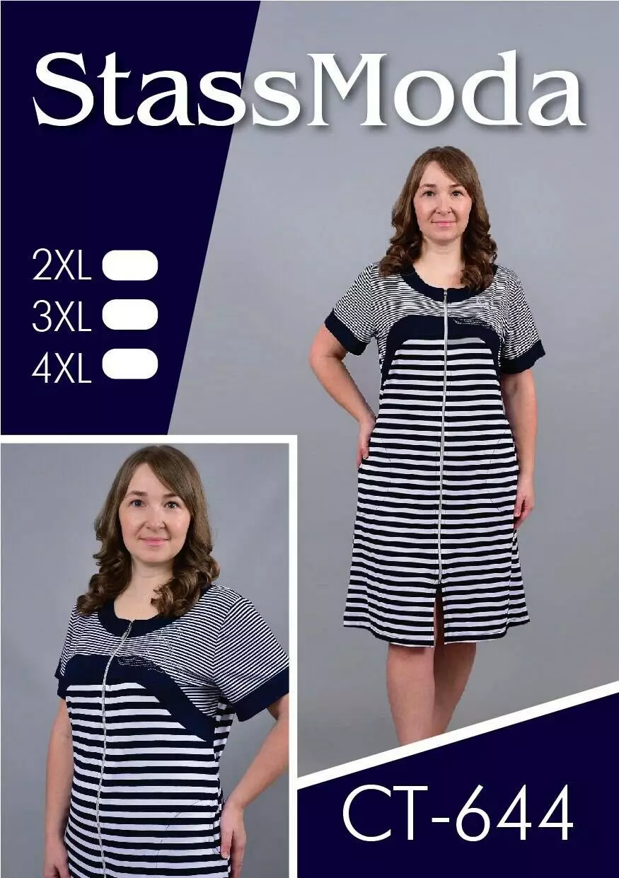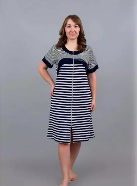 Модель із короткими рукавами, комбінований з відрізноюкокеткою по груді і практичними бічними кишенями та застібкою на блискавку ідеально підходить для дому. Стильний морський дизайн у смужку додає образу свіжості та елегантності. Відчуйте затишок і якість українського виробника Stass Moda!