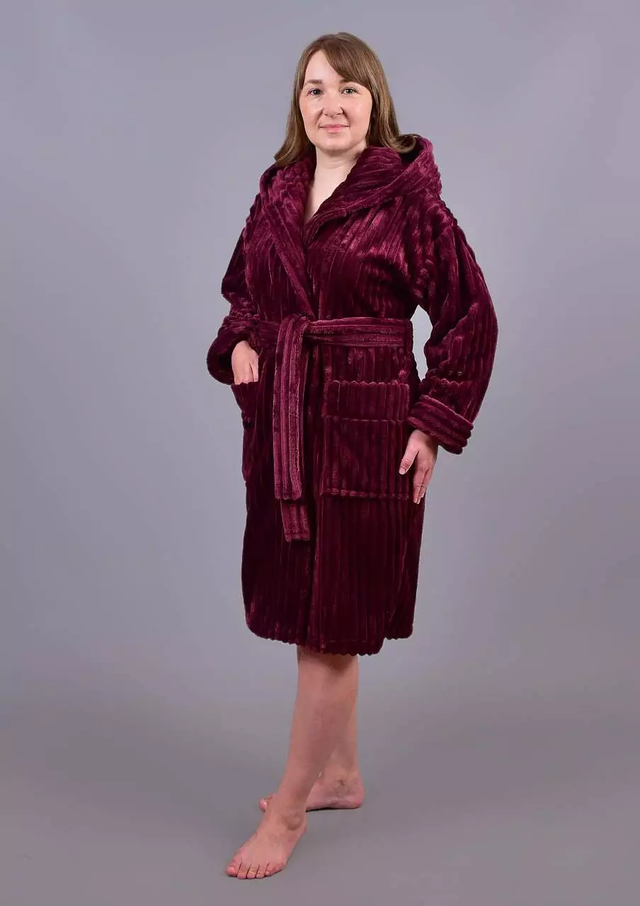Витончений і затишний жіночий халат капюшоном із махри софт (Шарпей) від Stass Moda Україна – ідеальний вибір для домашнього релаксу. Ніжна текстура тканини забезпечує приємні тактильні відчуття, а стильний рельєфний дизайн додає вишуканості.