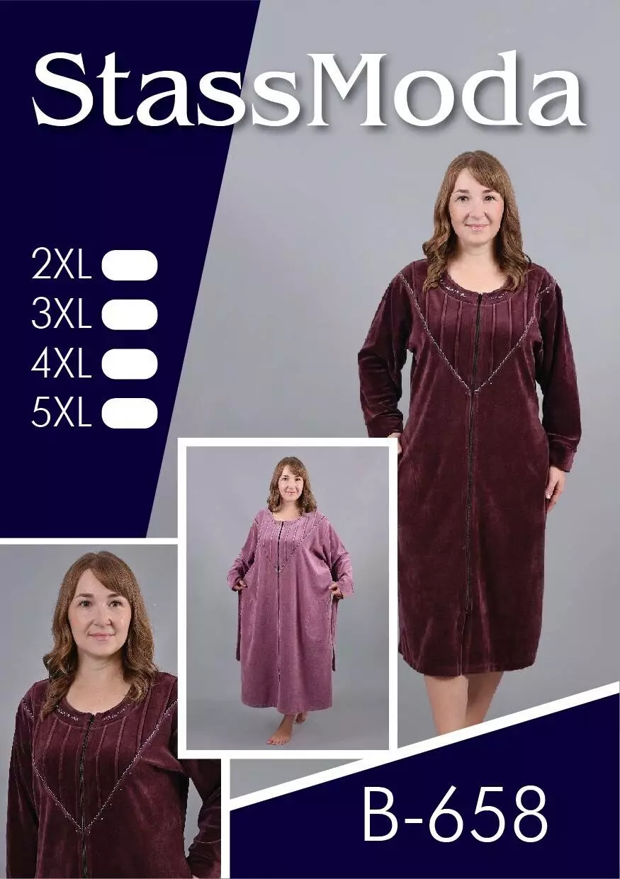 Жіночий велюровий халат Velvet Charm батал з довгими рукавами Stass Moda
