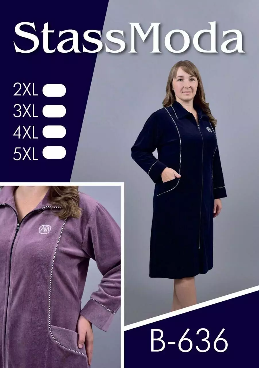 Жіночий велюровий халат Velour Elegance з довгими рукавами і білою окантовкою Stass Moda