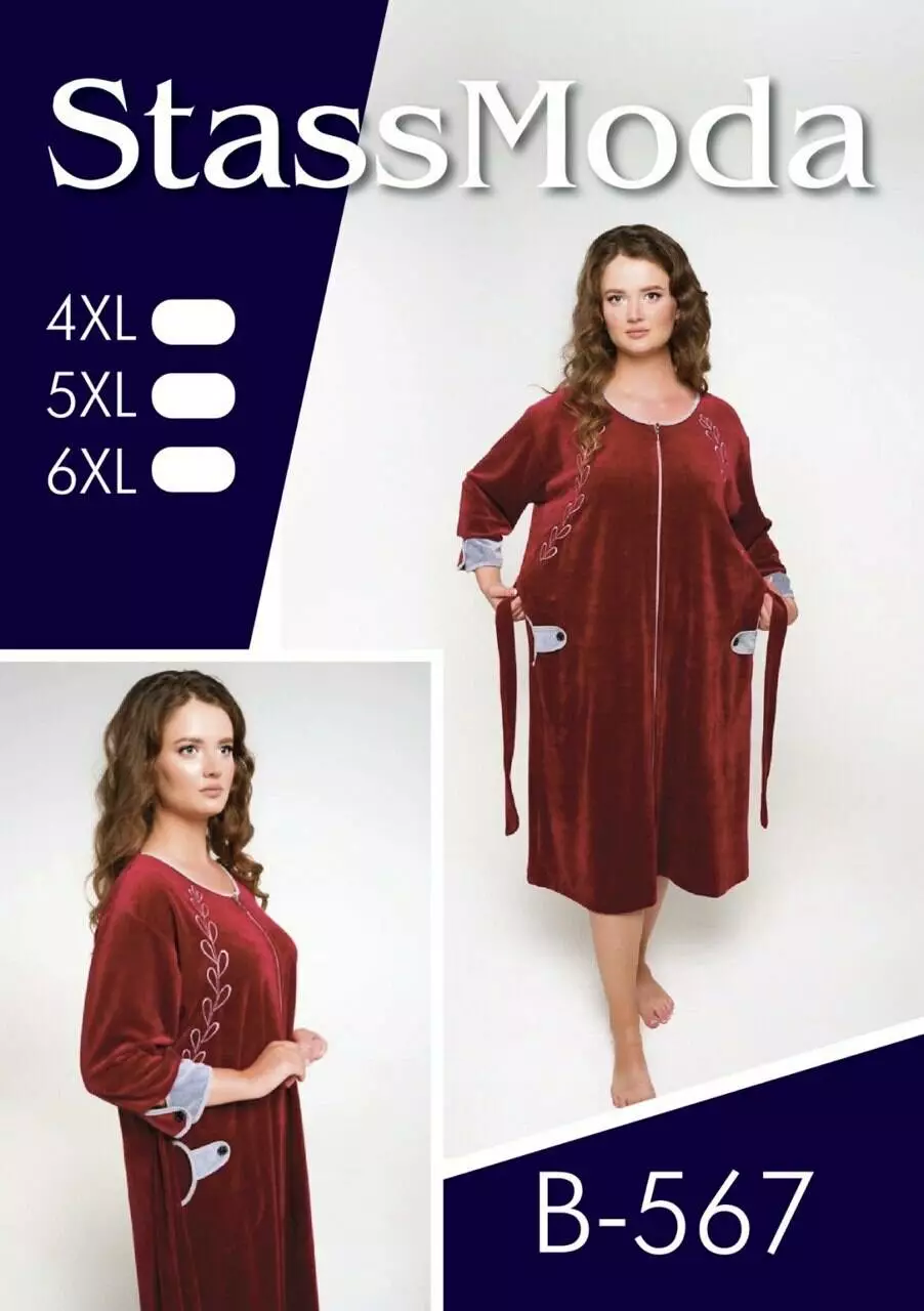 Жіночий велюровий халат Luxury Velvet з довгими рукавами і круглою горловиною Stass Moda