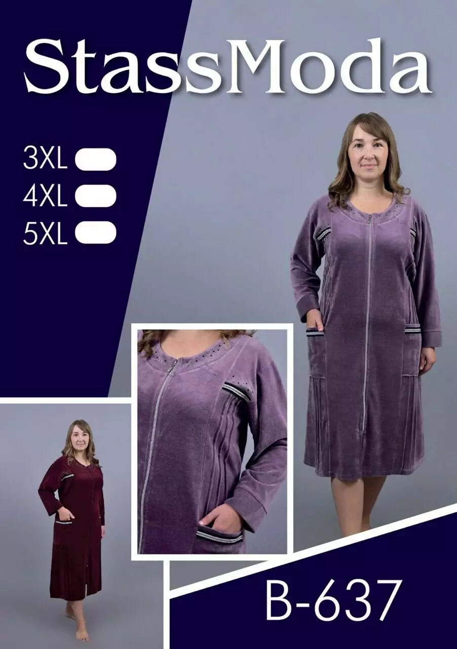 Жіночий велюровий халат Noble Comfort Батал з защипами по бочках Stass Moda