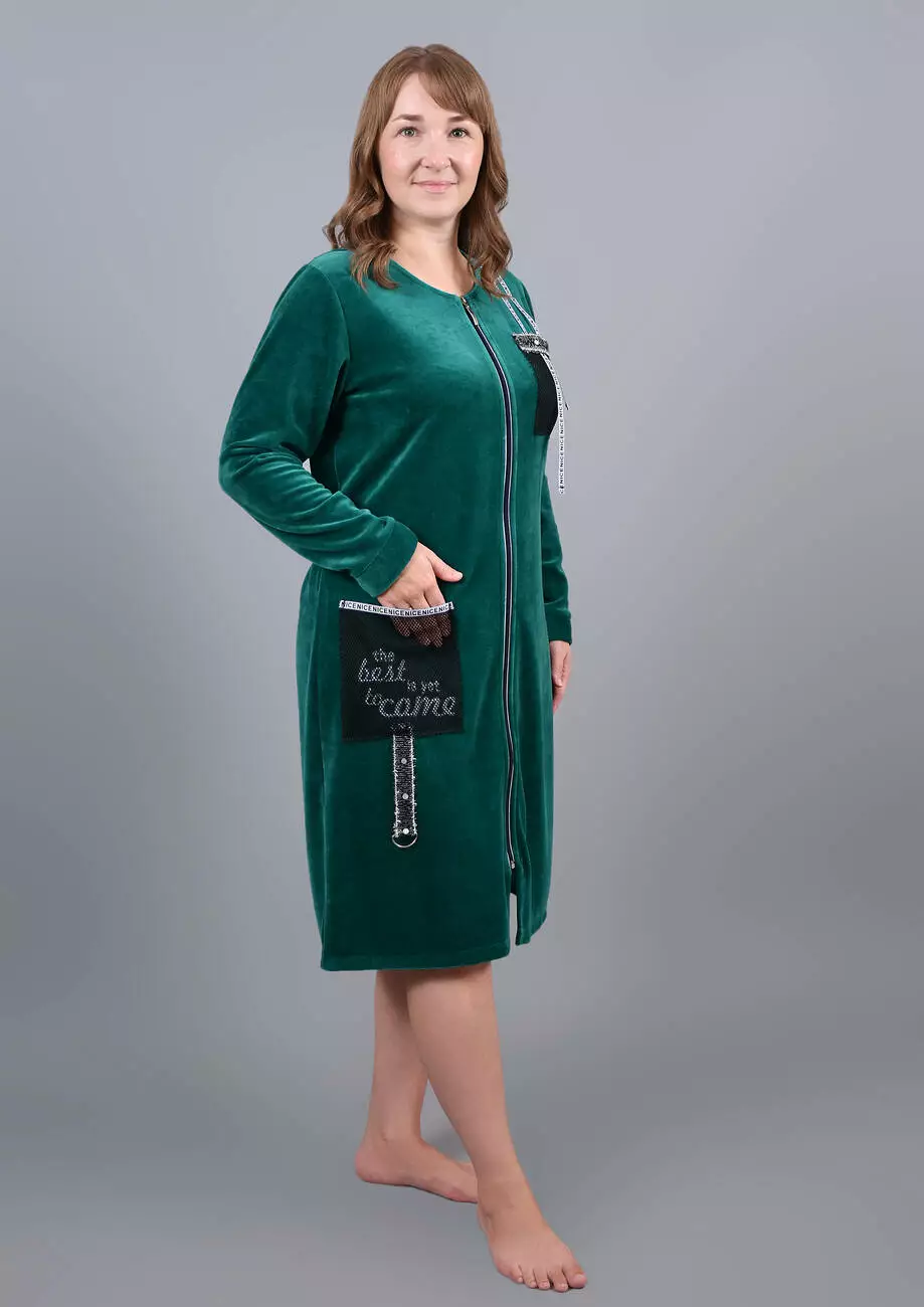 Обирайте жіночий велюровий халат Emerald Elegance – відчуйте справжню ніжність та затишок!